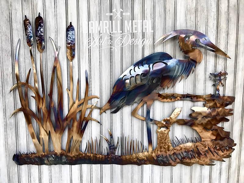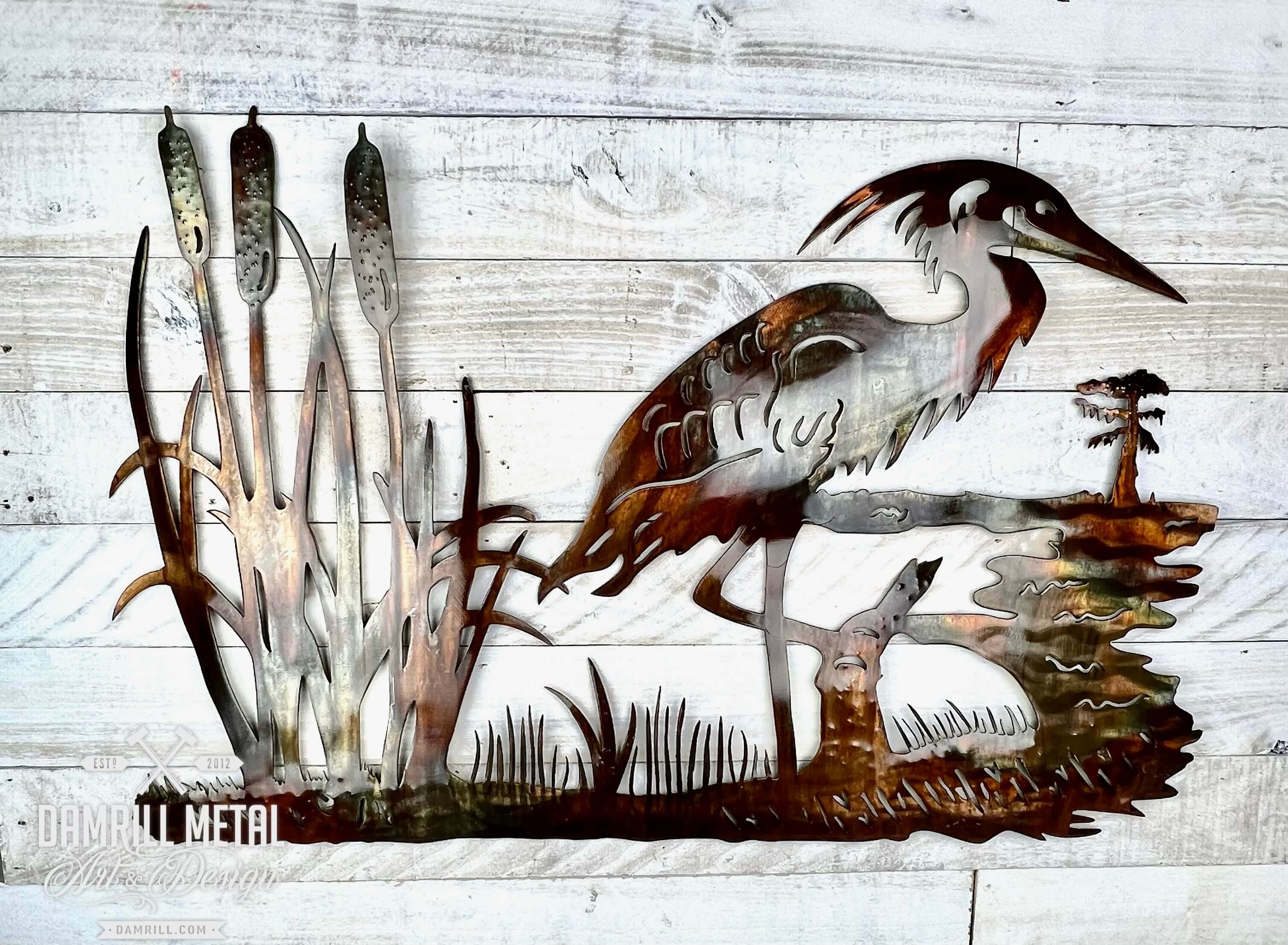 Blue Heron at Swamps Edge On The Bayou Cypress Metal Art - Damrill Metal SculptureBlue Heron at Swamps Edge On The Bayou Cypress Metal Art - Damrill Metal Sculpture